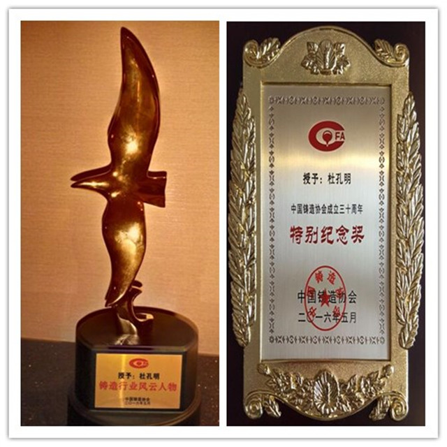 同時(shí),在第二屆中國鑄造節(jié)行業(yè)表彰會(huì)中,杜孔明總經(jīng)理榮獲“鑄造行業(yè)風(fēng)云人物”、“中國鑄造協(xié)會(huì)成立三十周年特別紀(jì)念獎(jiǎng)”和“奉獻(xiàn)鑄造行業(yè)三十年工作者”三項(xiàng)榮譽(yù)稱號。