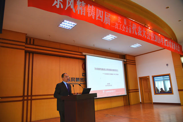 1月24日下午,東風(fēng)精鑄在五樓會議中心隆重召開第四屆一次員工代表、二次會員代表大會暨2016年度總結(jié)表彰大會。
